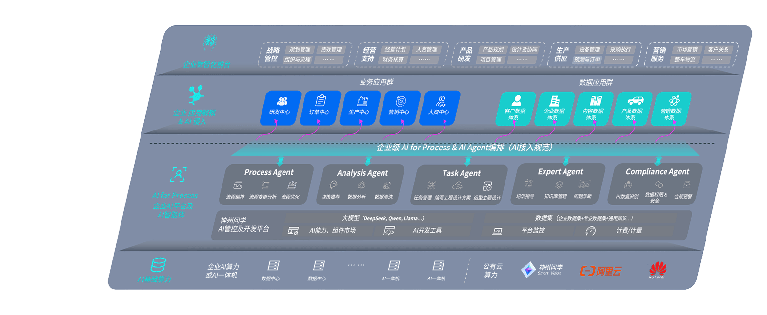 星耀国际问学智车解决方案是一套基于AI技术的汽车行业智能化系统,,,覆盖从底层算力到顶层AI应用的全栈方案。。方案由算力层、、、、模型层和应用层组成:算力层,,,方案支持多种一体机配置,,,,具备云端灵活部署、、多云适配以及动态优化计算资源的能力;模型层,,,星耀国际问学平台版提供了企业级AI应用一站式构建与管理平台,,,支持基于后训练强化技术的汽车企业专属模型的训练、、评测和运营;应用层,,,,星耀国际问学DeepSeek版提供包括超级员工、、、智能招采、、智能营销、、智能客服、、、AI for BI等一系列解决方案,,,,可助力汽车行业实现数字化转型,,,让管理更智能、、、响应更敏捷。。。。